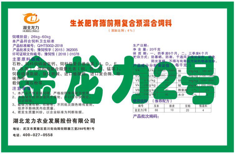 湖北龍力農(nóng)業(yè)發(fā)展股份有限公司坐落于武漢市黃陂區(qū)前川街向陽街群順三里298號(hào)附1號(hào)。公司成立于2014年6月,公司自成立以來把“創(chuàng)全球最大養(yǎng)豬綜合服務(wù)”為企業(yè)愿景。致力于打造教保料品牌”作為公司發(fā)展的明確目標(biāo)。公司一直致力于豬營(yíng)養(yǎng)的研究和開發(fā),積極與國(guó)內(nèi)外高校和科研機(jī)構(gòu)合作,推廣養(yǎng)豬技術(shù)、動(dòng)物營(yíng)養(yǎng)新概念,向世界農(nóng)牧企業(yè)學(xué)習(xí)與合作。公司采用國(guó)內(nèi)先進(jìn)的生產(chǎn)工藝,選擇高精度電子配料秤,高均勻度、無殘留混合機(jī)等先進(jìn)設(shè)備....